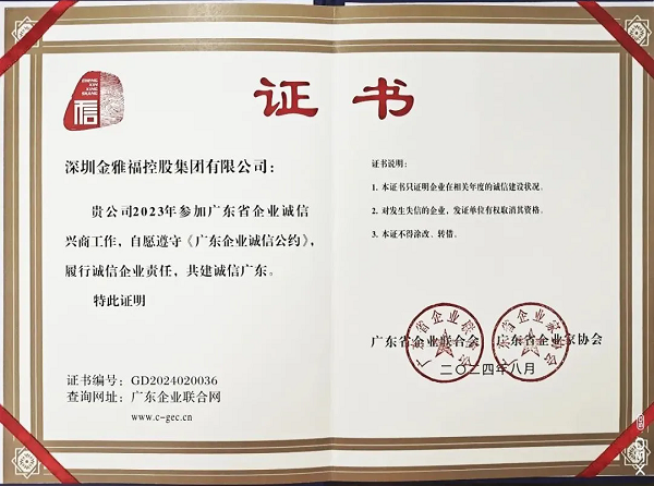 一直以来,金雅福集团高度重视企业诚信体系����� �������Ƴ������������ �������Ƴ������������ �������Ƴ������������ �������Ƴ�������建设,积极响应、参与深圳市消委会、深圳市市场����� �������Ƴ������������ �������Ƴ������������ �������Ƴ����������� �������Ƴ�������监管局主办的3·15保护消费者权益系列活动,����� �������Ƴ������������ �������Ƴ����������� �������Ƴ������������ �������Ƴ������并联合行业单位发起诚信经营、守护����� �������Ƴ������������ �������Ƴ����������� �������Ƴ������������ �������Ƴ�������消费者权益等实际行动,切实将诚信理念����� �������Ƴ������������ �������Ƴ������������ �������Ƴ������������ �������Ƴ������内化于心,外化于行,用信誉赢得����� �������Ƴ������������ �������Ƴ������������ �������Ƴ������������ �������Ƴ�������市场赞誉,荣获“AAA级信用企业”“广����� �������Ƴ������������ �������Ƴ����������� �������Ƴ������������ �������Ƴ������东省守合同重信用企业”“广东省����� �������Ƴ������������ �������Ƴ������������ �������Ƴ������������ �������Ƴ�������最具社会责任感企业”等多项荣誉。